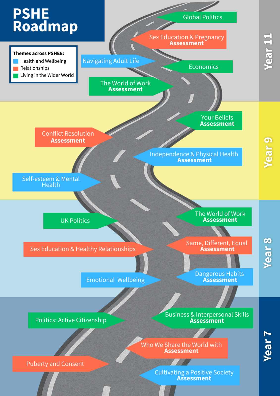 Through a carefully sequenced programme across Key Stages 3 and 4, students follow a spiral curriculum around the three key themes of: