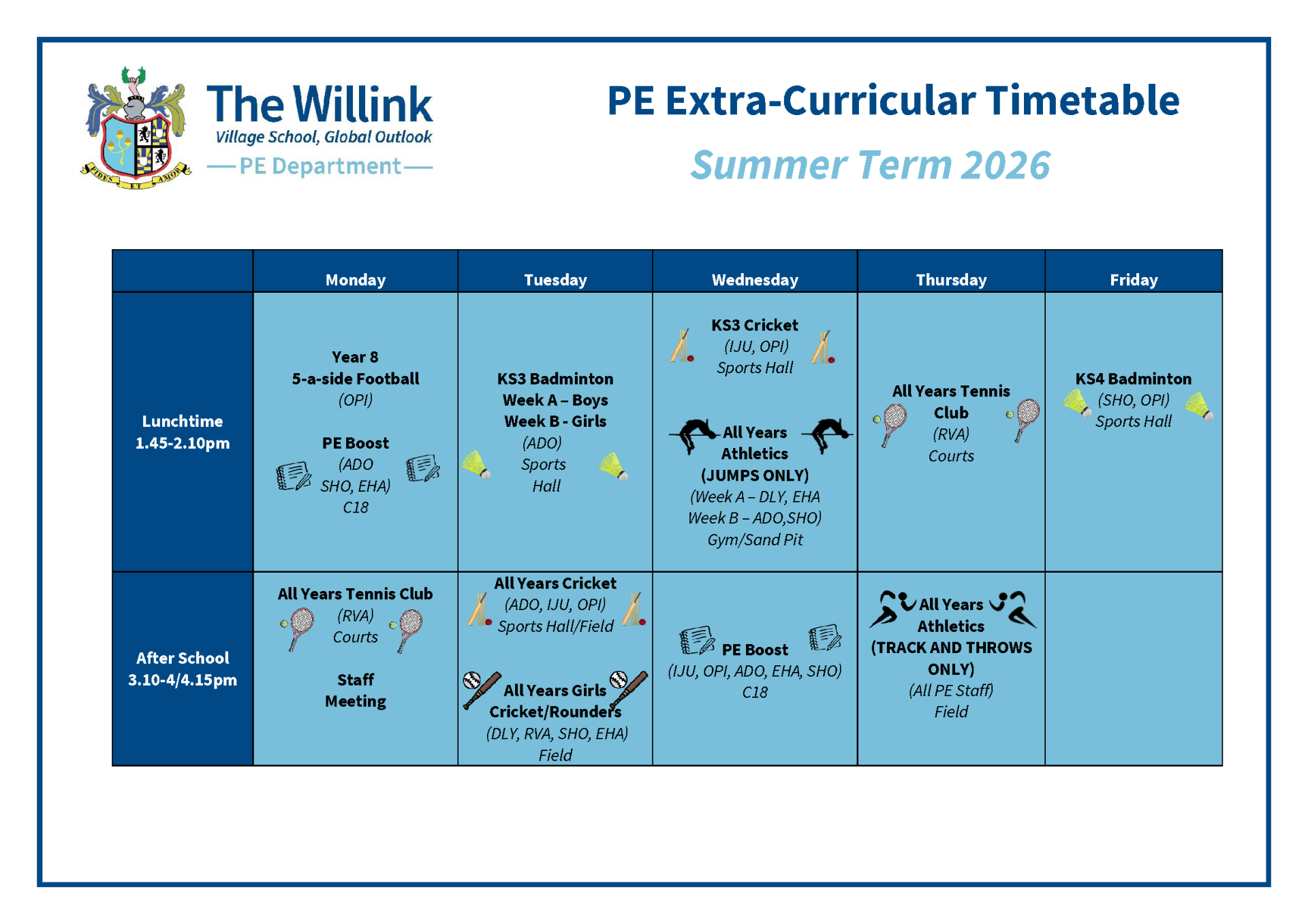 Our Extra Curricular Clubs timetable can be found here.