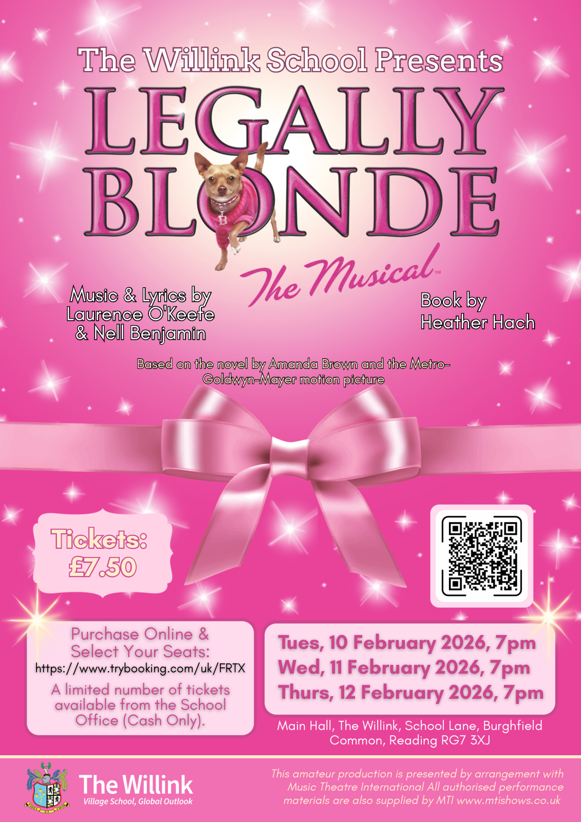 Tickets are now on sale for Legally Blonde “The Musical”, proudly presented by The Willink School and featuring our talented students. Based on the novel by Amanda Brown and the Metro-Goldwyn-Mayer motion picture, with music and lyrics by Laurence O’Keefe and Nell Benjamin and a book by Heather Hach, this is a show not to be missed.
