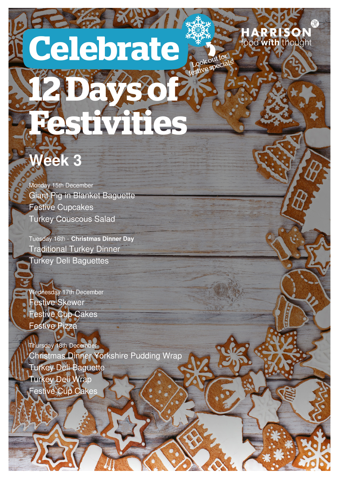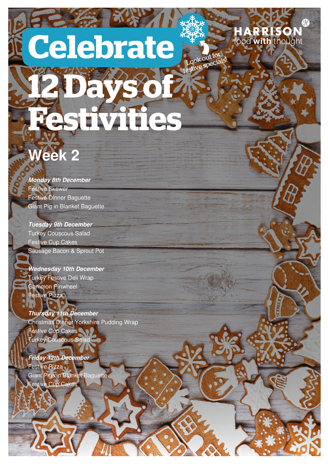 Harrison are pleased to offer the following Meal Deal options: